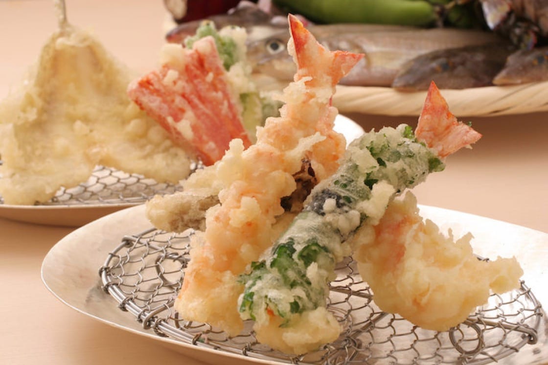 與西式厚重的炸魚麵糊不同,日式海鮮天婦羅(Tempura)追求的是極致的輕盈與空氣感。無論是鮮甜的大蝦,還是肉質細嫩的沙鮻魚(Kisu),外面只裹著一層薄如蟬翼的脆衣,並通常蘸取帶有柴魚與味醂甜味的天婦羅醬汁(Tentsuyu)或抹茶鹽食用。